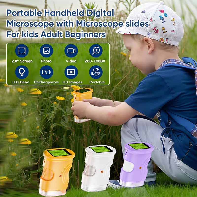 1000x magnification and 2mp camera: Real 1000X optical and digital magnification with manual focus control lets kids see actual plant cells and insect anatomy in crystal-clear 2MP resolution. Unlike toy microscopes, the precision-engineered focus system provides lab-quality imaging, while the anti-shake design keeps specimens stable even in small, excited hands. STEM-certified for true science learning, it transforms backyard exploration into real discovery.